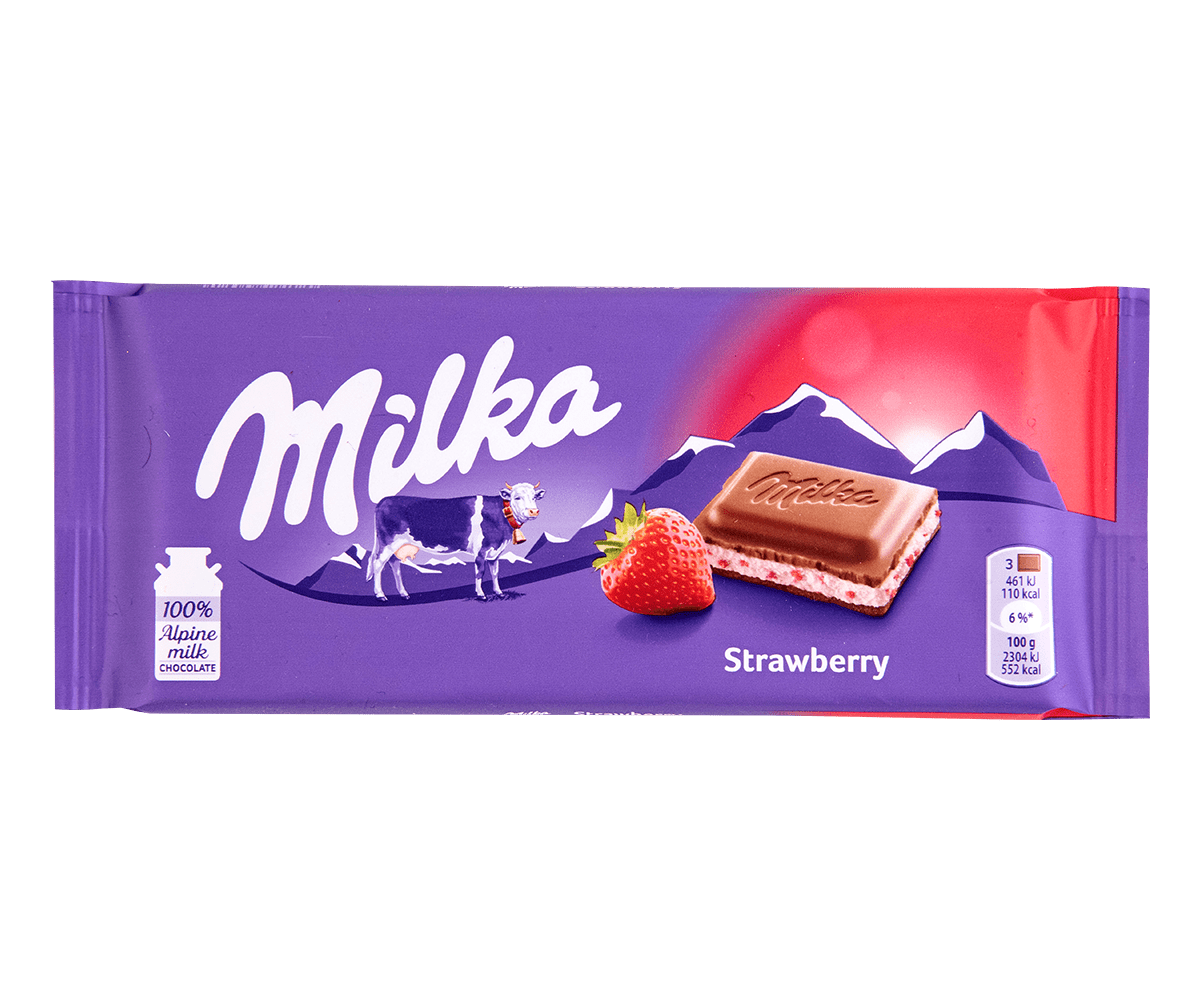Milka chocolate bar with strawberry taste