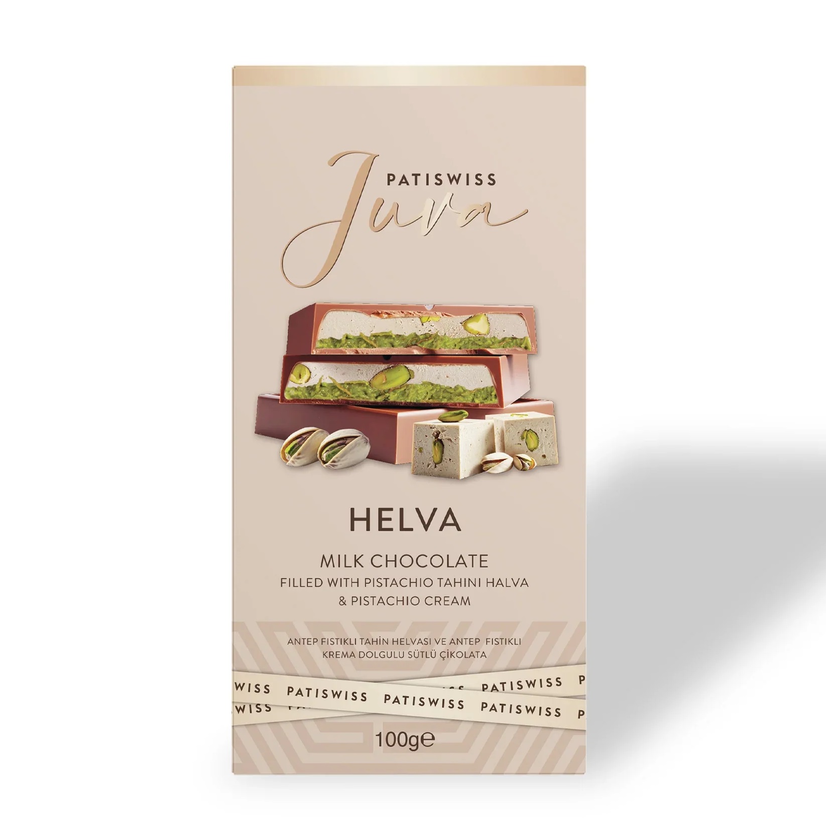 Patiswiss Juva Halva Milk Chocolate With Pistachio Tahini Halva & Pistachio Cream 100g