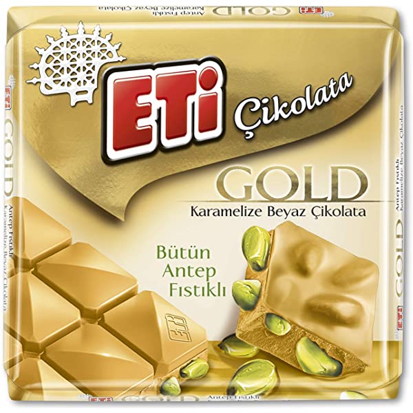 Contents Caramelized White Chocolate 86% [Sugar, Cocoa Butter, Whole Milk Powder, Caramelized Sugar (Sugar, Maltodextrin), Butter (Dairy Product), Emulsifiers (Sunflower Lecithin, Polyglycerol Polyricinolate), Flavoring (Vanillin). Milk Dry Matter is At least 27%.], Pistachio 14%.