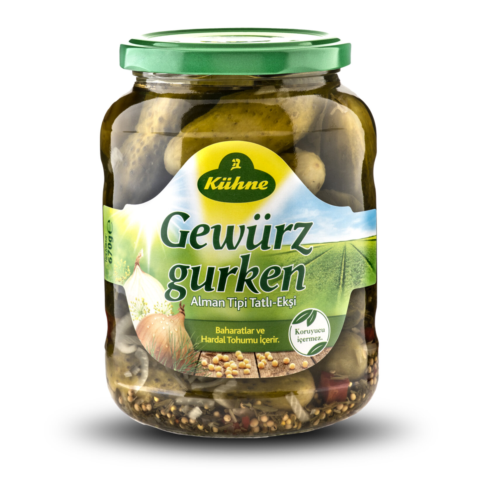 Pickle; It is the fermentation of vegetables and fruits in brine, which is a mixture of salt and vinegar, that is, a kind of fermentation process. Kühne keys; It is produced with great care and care. Its materials are hand-selected, controlled and presented to the consumer in glass jars. Fresh herbs and the right amount of salt are added to a good vinegar, resulting in a balanced and distinctive taste. Thus, it is ensured that the pickles do not lose their crispness and color. You can find pickles suitable for every taste in Kühne. German type pickled cucumbers; It is prepared according to a special recipe that is 50% less salty than Turkish-style pickles and contains sugar. The cucumbers used were specially selected in the range of 6-9 cm. Since it is lighter (without salt) than Turkish type pickles, you can also use it as an aperitif. Inside; cucumber (53%), water, salt, sugar (1.5%), vinegar (0.75%), spices (dill, yellow mustard seeds, onion, red pepper), liquid pickle flavor.