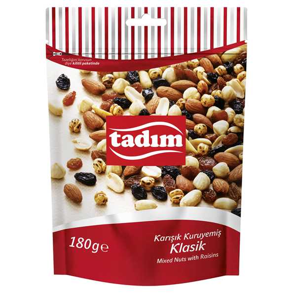 The nuts and dried fruits in Tadım Mixed Nuts Classic contain monounsaturated and/or polyunsaturated fatty acids. Replacing saturated fats with unsaturated fats in the diet contributes to the maintenance of normal blood cholesterol levels.